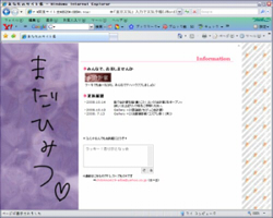 前回の日記からもうかれこれ1ヶ月が経過しておりますね…御無沙汰しております…… 東京旅行から帰ってきてからというもの、なんだか知りませんが急に仕事が忙しくなりまして… 気づいたらもう9月も終わりそう!あばばー パソ子さんに触るのも久しぶりで、もう…なんていうか…浦島太郎状態です(笑) しばらくこの状況続きそうで、さらに悲しいですが… 今後はもうちょっと顔を出したいです。頑張ります☆ とりあえず、今は臣の誕生日「おみたん」を全力でお祝いしたいよ…! 出遅れまくりだけど!!笑 気合い入れて頑張るからゆるしておみ…! で、このひと月の間にもいろいろありまして… その…、某さんと「ネオロ~マンスげ~む」なるものに手を出してしまいました(笑) はるとき3! 実はこのゲーム、数年前に友人に徹夜プレイしてもらって以来ずっと気になってまして…それからすぐに買っちゃった!…んですが(笑)やるタイミングをつかめずに今までずっと放置プレイだったんです。その話をしたら「それはやるべきだ!むしろやれ!!」(笑)とお達しが出たので…この機会にと思って……… …いやーやっぱりこういうゲームって楽しいですね!笑 妹君の協力もあり、お陰様であらかたクリアできたので、そのうちぼちぼち感想を述べていきたいなあと思います… あと落書きしたい!最近別な方面からも和装ブームだったので、凄くお絵かきしたいです…素で男の子にヒラヒラした着物を着せられるって最高! 日記とか落書き場に変な絵が増えていったらすみません… むしろジャンル増やしてしまいそうな勢いだ……ひー! …ちょっと冷静に考えます。 運命の鼓動よ(?)うっかりと、「ネオロ~マンスげ~む」なるものに手を出してしまいました(笑) はるとき3! …いやーやっぱりこういうゲームって楽しいですね!笑 これは…部屋作っちゃうべきでしょうか…… …ちょっと冷静に考えます。 ただいま!遅くなっちゃいましたが…ただいまです! 初日から乗るはずだった電車が雨で止まってしまったり等々いろいろありましたが… 楽しく夏コミお邪魔してきましたvvあー本当に楽しかった!向こうは信じられないくらい暑かったですが、それすらいい思い出です。沢山の方とお話しさせてもらっちゃって!ひー!もうもう、すごく楽しい時間を過ごさせていただきました!時間がなくてゆっくりとお話しできなかったのが非常に残念です…! 興奮のしすぎでしどろもどろにしかお話しできなかったような気がするのですが(あわあわ)声かけてくださったみなさん、ありがとうございました!(メールとかのお返事は後日改めてさせていただきたいと思います…!こちらもありがとうございました!) そのあとも生!声優さんにハァハァしたり、横浜で一生懸命ヒデの家を探したり(笑)、非常に充実した旅行でした。いろいろ補給できたから・・ これからもがんばろう!おー! 君も夏バテかい?北京オリンピックもあと1週間後に迫ったこの時期、我が家のテレビさんがにわかに不調気味になってきました… 電源入れるとしばらく画面映らず、映ったかと思うとまた消える、を繰り返してようやく見れる……という状態です。こっこれはヤバい…!?ひぃ!